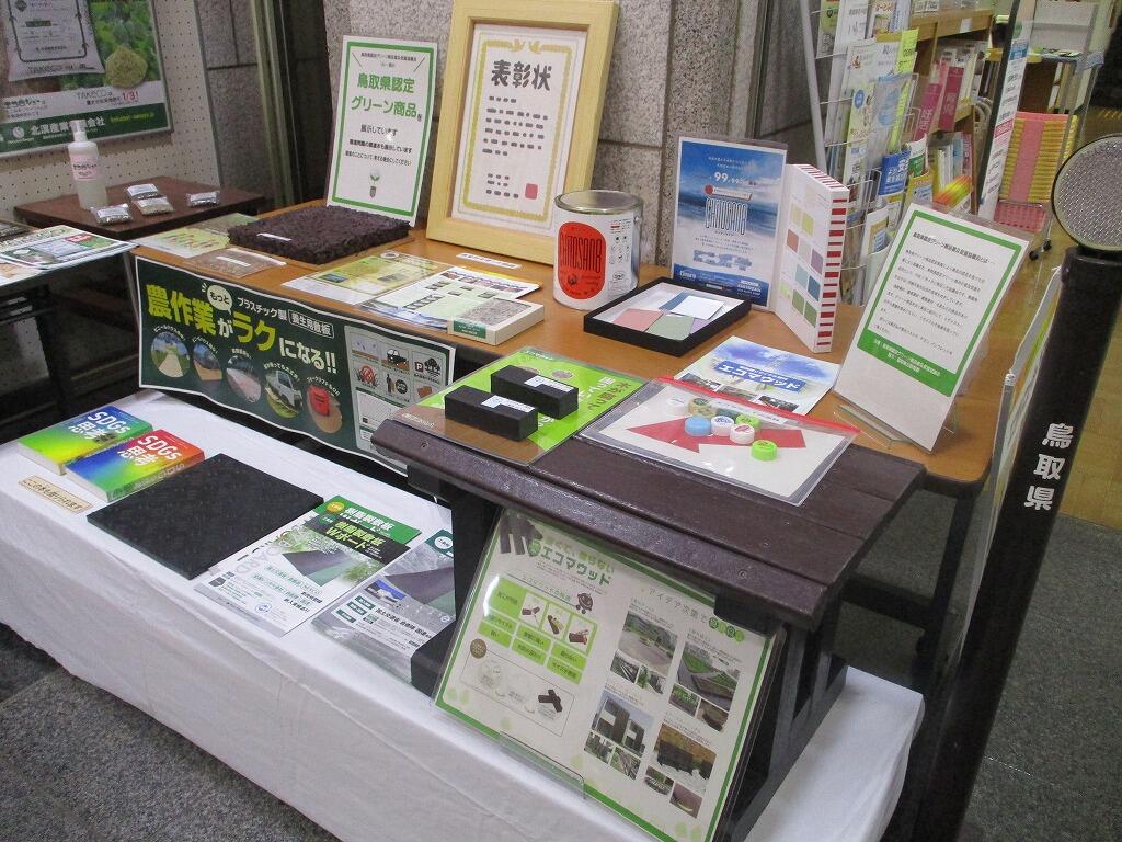 県内企業が廃棄物・資材等を原料に作成した「鳥取県認定グリーン商品」の展示を今年度も実施します。