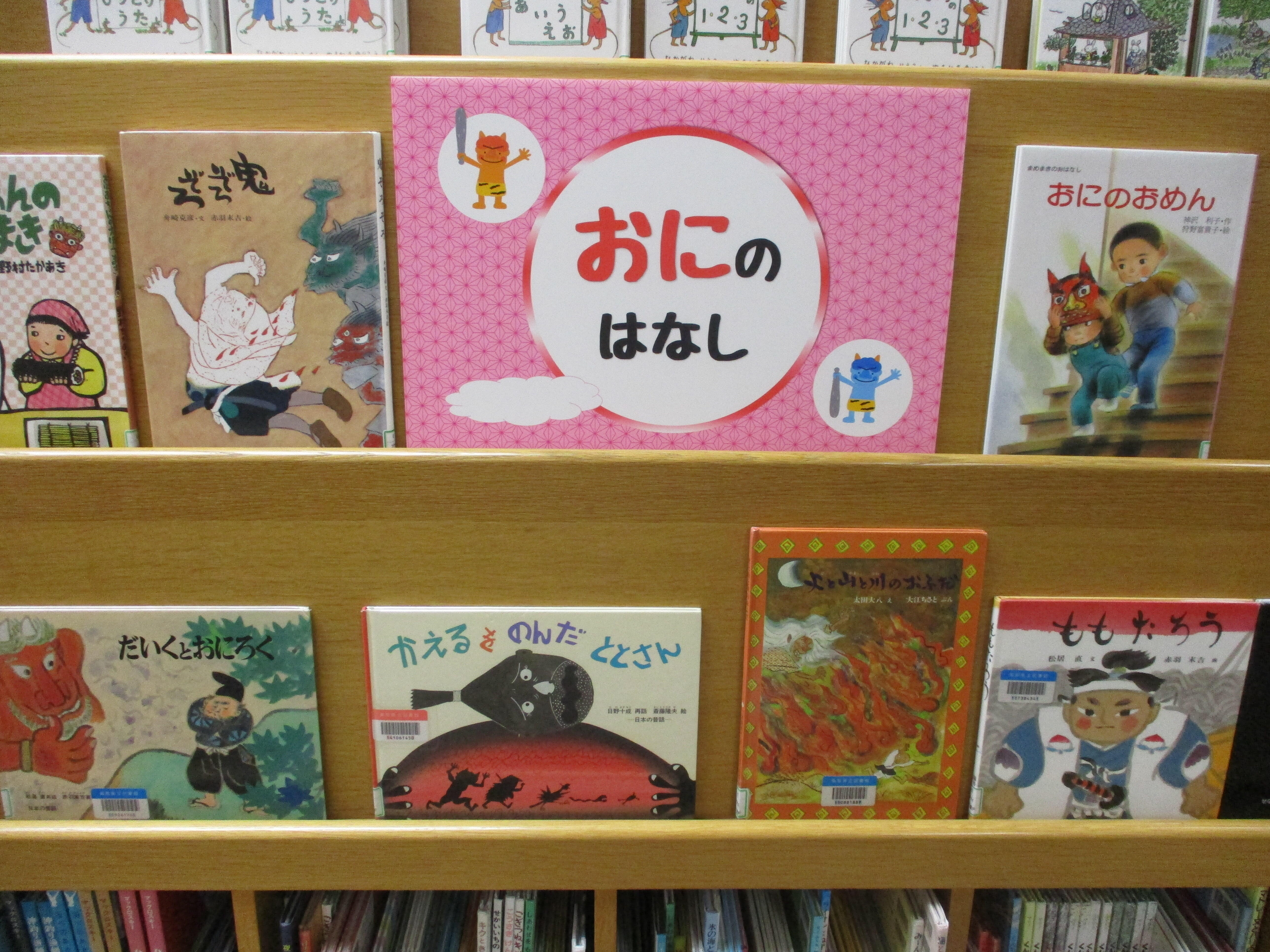 児童図書室では、いろいろな 鬼の 本を 展示しています。